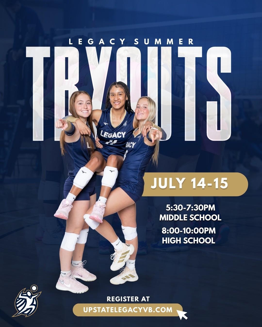 Legacy Volleyball is a competitive travel volleyball club serving families across the Upstate of South Carolina, including Greenville, Spartanburg, Greer, Simpsonville, Duncan, Boiling Springs, Duncan, Landrum, Taylors, Woodruff, Mauldin, and surrounding communities.